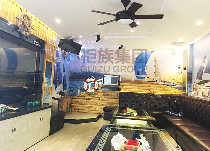 外觀弧形線條很好的搭配了音樂元素,凸顯集裝箱個性化設(shè)計特點(diǎn)。內(nèi)部唱歌、休閑設(shè)施齊全。